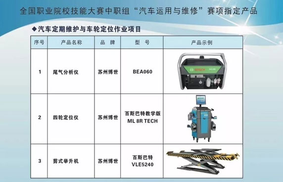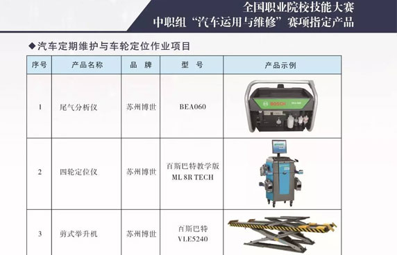 汽車(chē)定期維護與車(chē)輪定位作業(yè)項目/◆汽車(chē)維修基本技能(néng)項目賽項指定産品