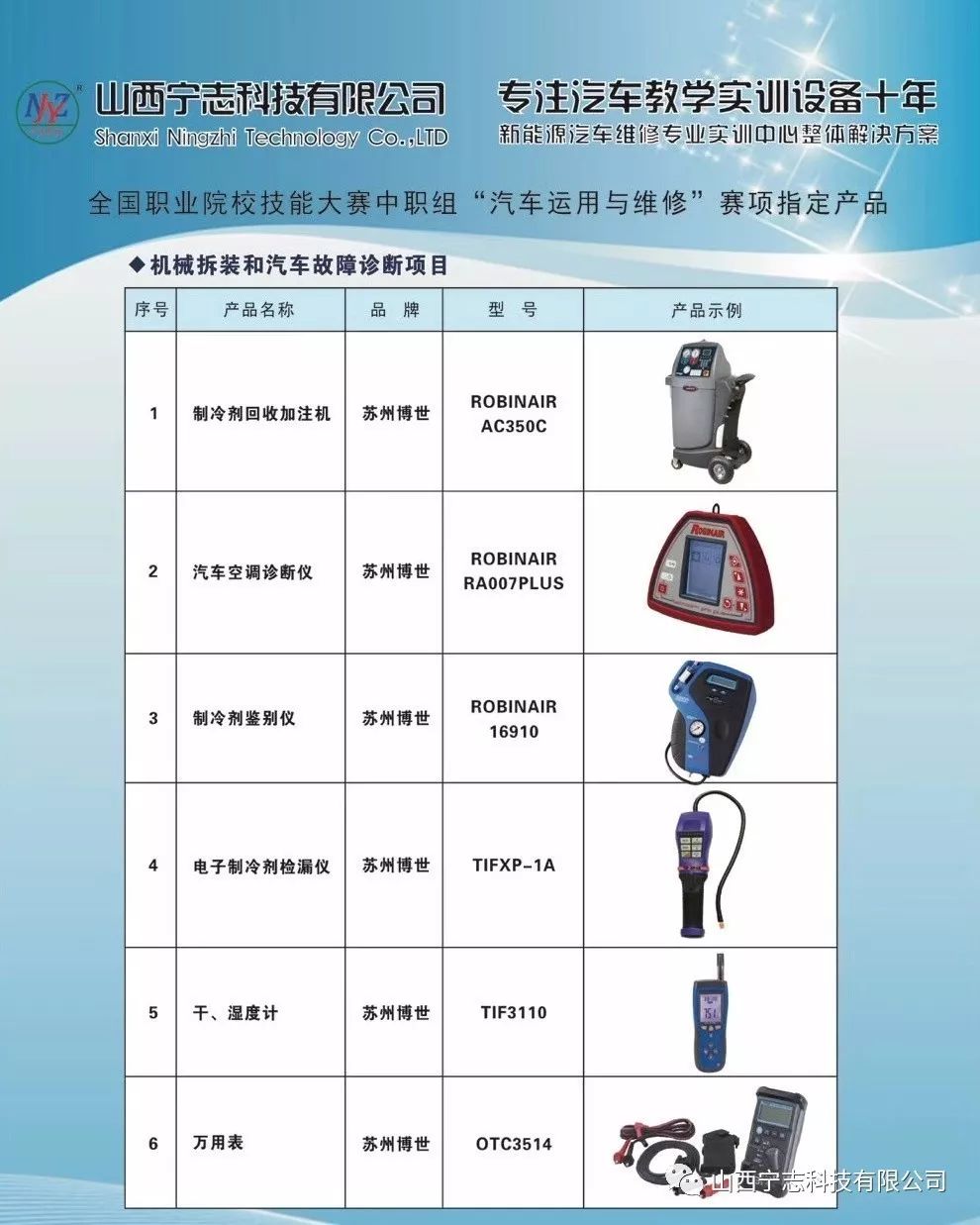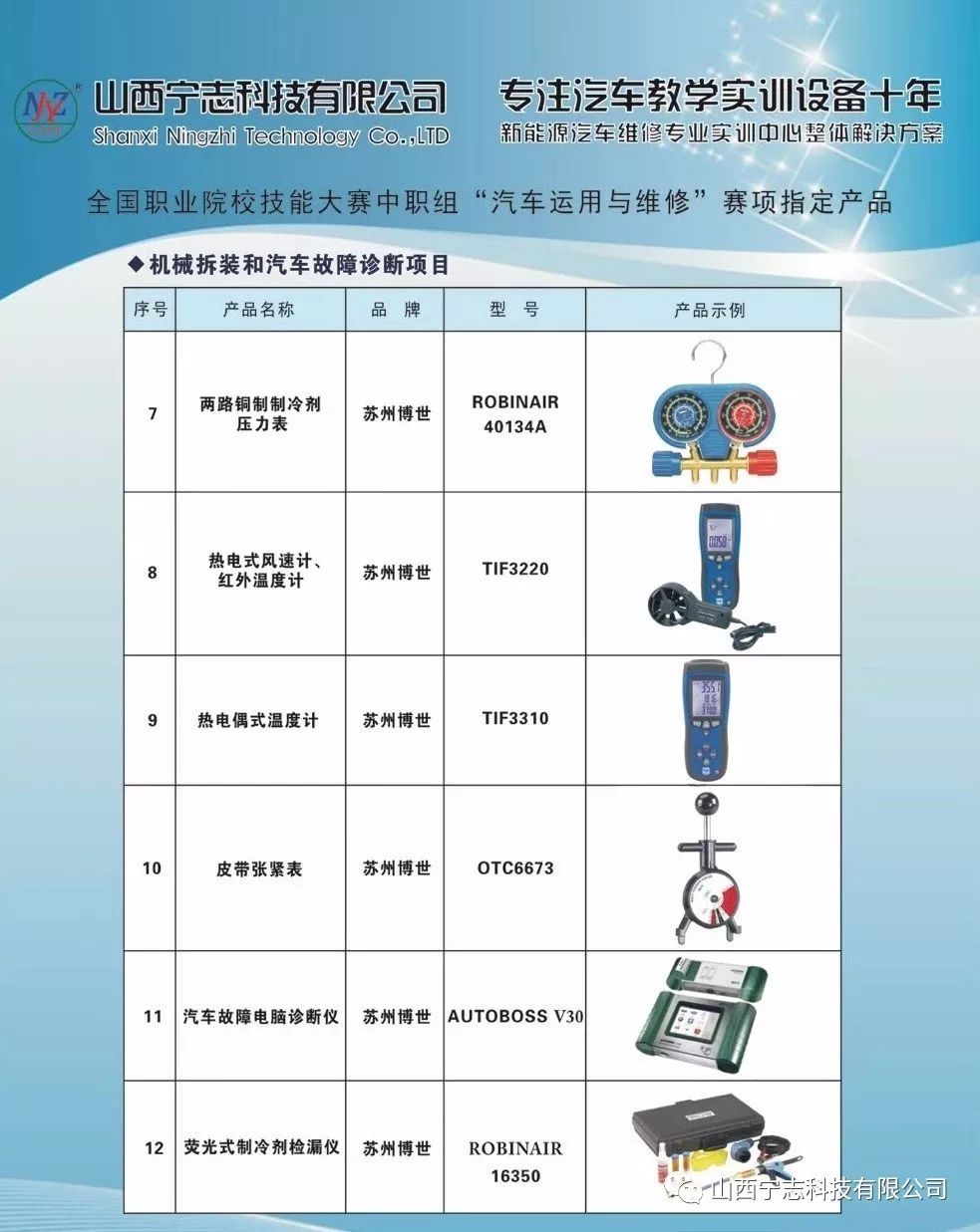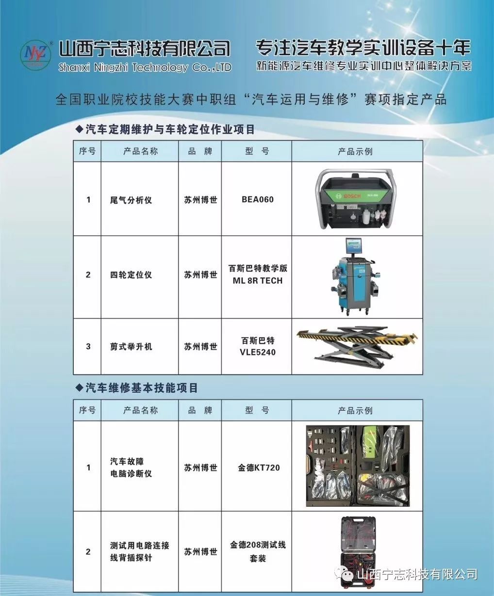 全國職業(yè)院校(xiào)技能(néng)大(dà)賽中職組“汽車(chē)運用(yòng)與維修”賽項指定産品