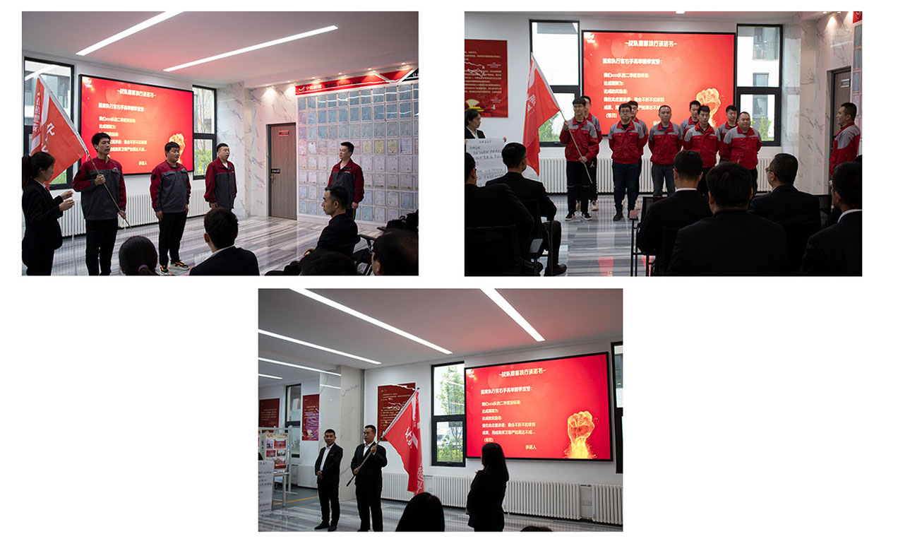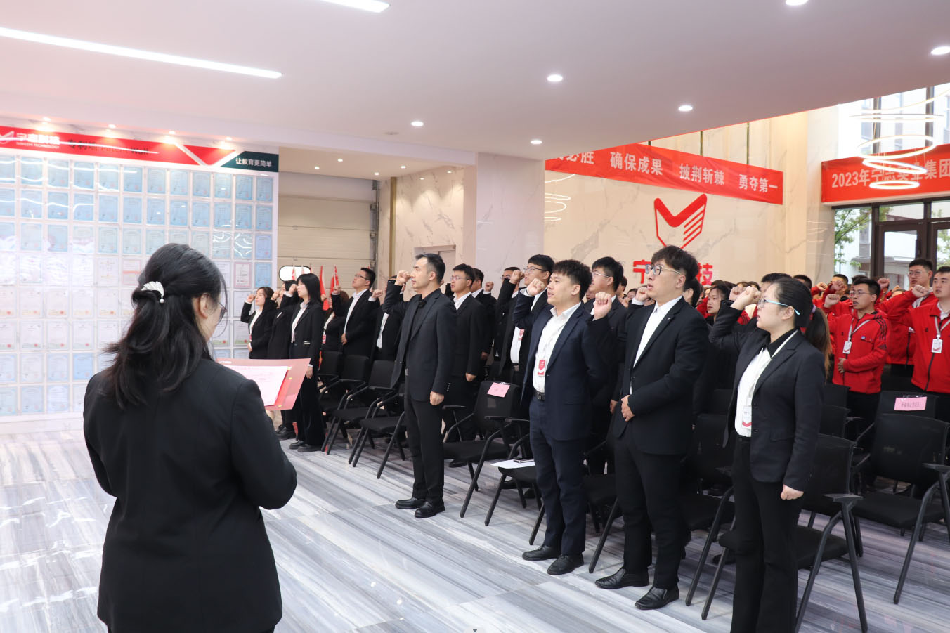 大(dà)會(huì)第一項議程爲企業(yè)文(wén)化宣誓儀式,在集團董事長許甯的(de)帶領下,集團領導、各部門主要負責人(rén)、全體基層員工(gōng)面向企業(yè)文(wén)化誓言,右手舉拳,莊嚴宣誓。