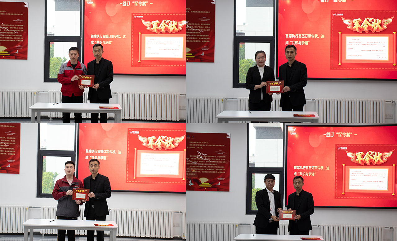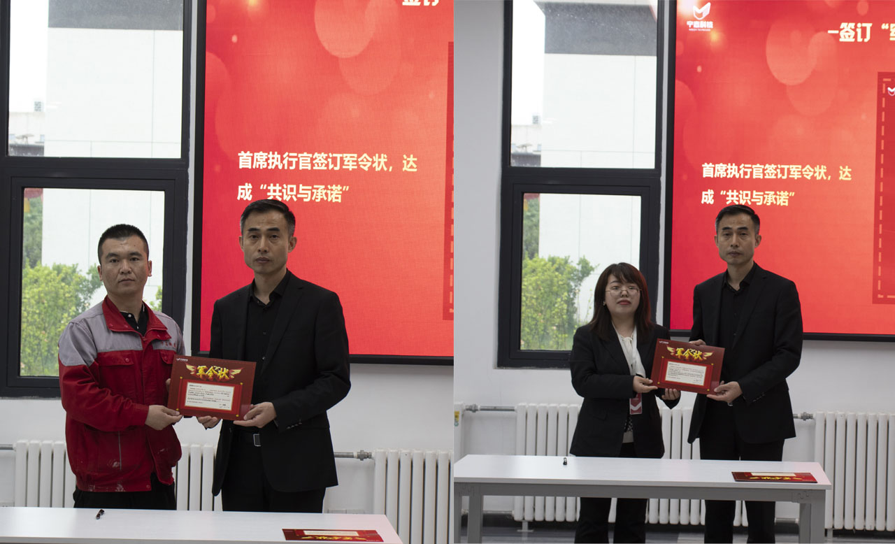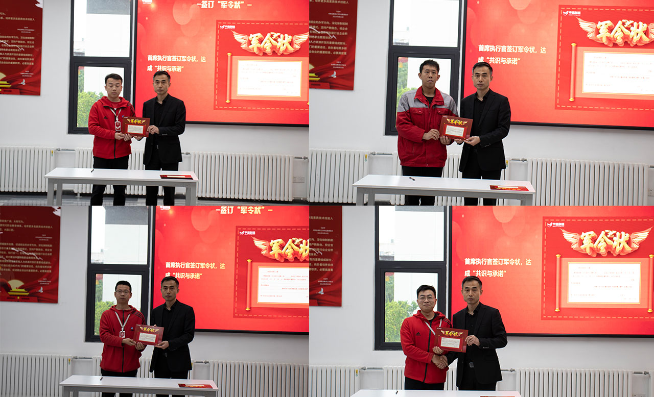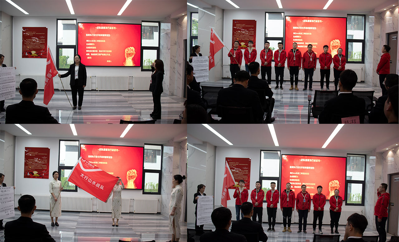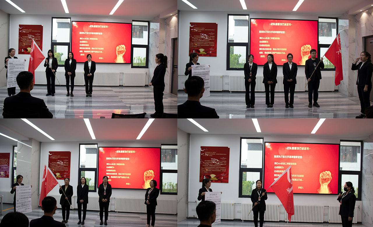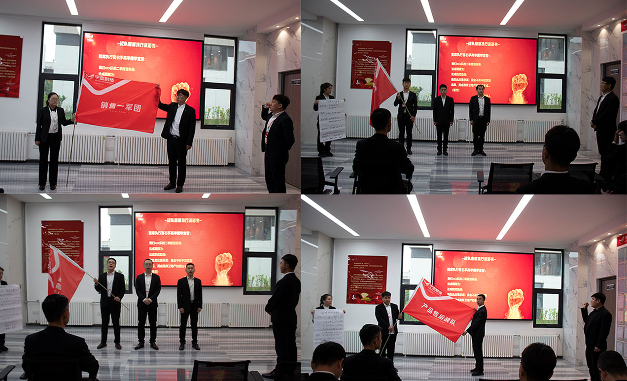 震雷始于曜電,出師(shī)先乎威聲。大(dà)會(huì)第四項議程爲各戰隊進行(xíng)授旗儀式并宣讀(dú)執行(xíng)承諾書(shū),19位首席執行(xíng)官帶領戰隊按上(shàng)場(chǎng)順序排好隊伍,一面戰旗就是一個(gè)集體的(de)象征和(hé)行(xíng)動的(de)标杆,集團戰略執行(xíng)總指揮許甯親手将戰旗授予各個(gè)戰隊的(de)首席執行(xíng)官,有(yǒu)了旗幟的(de)引領,擰成一股繩的(de)19個(gè)執行(xíng)戰隊必将一往無前。在郎朗的(de)宣讀(dú)聲中,戰役必勝的(de)信心、整齊嘹亮的(de)口号,穿透會(huì)場(chǎng),直抵人(rén)心。