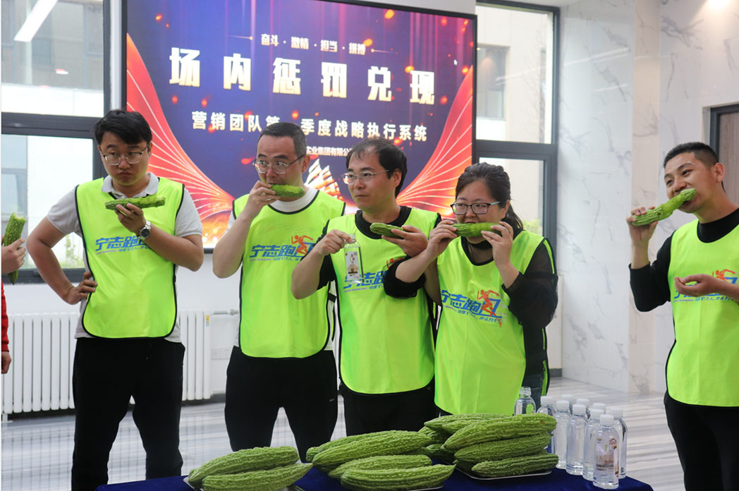 接下來是室内的(de)兌現活動,營銷部門的(de)三支隊伍全員生吃苦瓜,不逃避,沒有(yǒu)借口,堅定地(dì)踐行(xíng)在集團戰略執行(xíng)系統第一季度啓動大(dà)會(huì)上(shàng)作出的(de)承諾。與此同時,研發中心的(de)其他(tā)隊伍發揚集體主義精神,主動分(fēn)擔起了吃苦瓜的(de)挑戰,一群人(rén),一條心,一件(jiàn)事,一起扛!