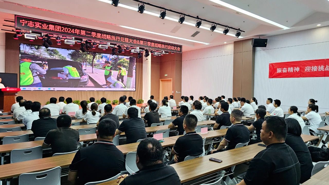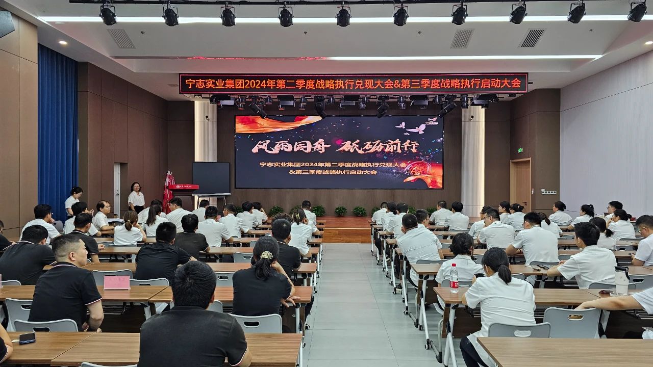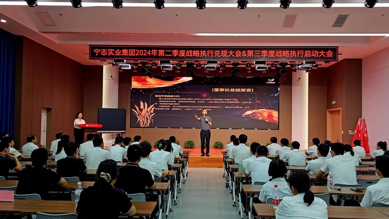 2024年8月(yuè)10日,在甯志實業(yè)集團旗下學校(xiào)太原市恒中中學的(de)智慧多功能(néng)報告廳内,甯志實業(yè)集團“2024年第二季度戰略執行(xíng)系統兌現大(dà)會(huì)暨2024年第三季度啓動大(dà)會(huì)”如(rú)期舉行(xíng),共有(yǒu)包括集團研發中心、運營中心、制(zhì)造基地(dì)及旗下各子公司本部全體員工(gōng)在内的(de)19支戰略執行(xíng)戰隊參加了本次大(dà)會(huì)。在集團董事長許甯的(de)帶領下,全體與會(huì)成員不折不扣地(dì)兌現了2024年第二季度戰略執行(xíng)大(dà)會(huì)上(shàng)的(de)承諾,細化部署了2024年第三季度戰略執行(xíng)任務。集團上(shàng)下将按照(zhào)第三季度既定工(gōng)作目标、路(lù)徑、要求,集中資源、優勢、力量,擰成一股繩,鉚足一股勁,一個(gè)節點一個(gè)節點攻克,一項工(gōng)作一項工(gōng)作落實,爲奮力完成年度目标任務開(kāi)好局起好步。