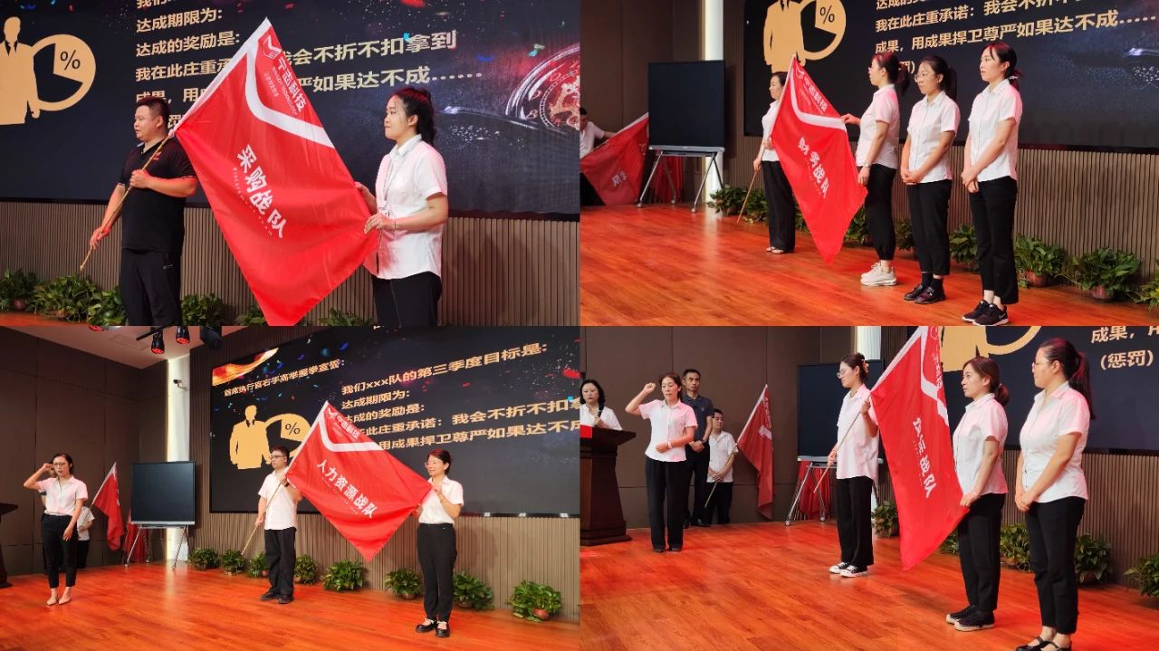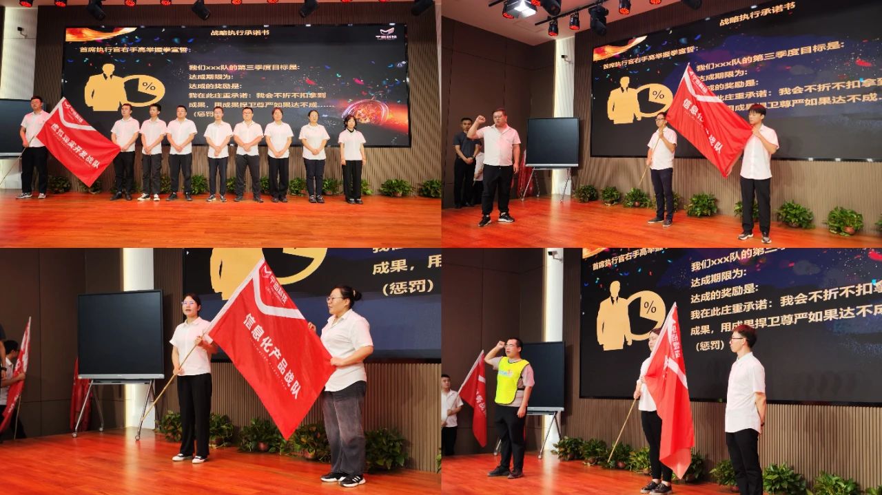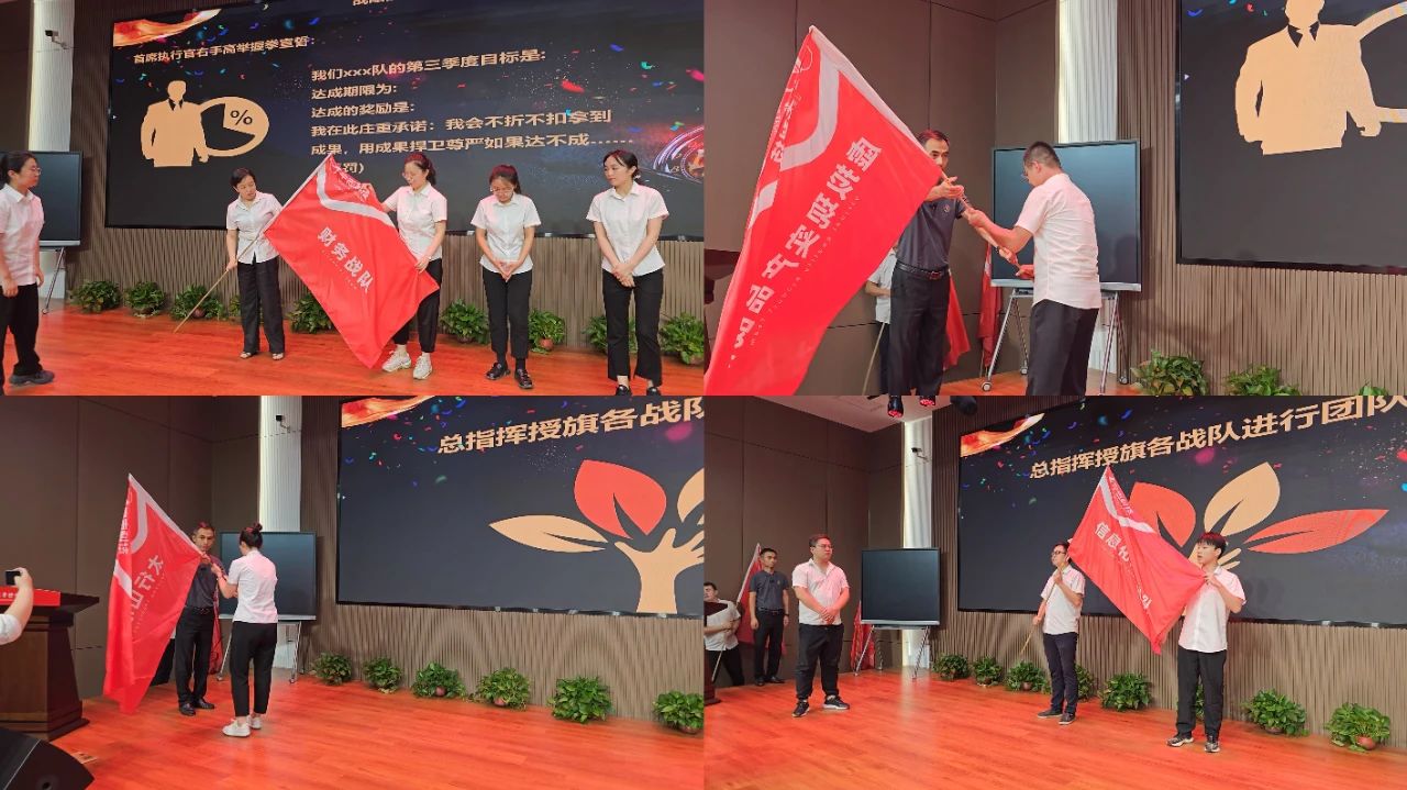 浪遏飛(fēi)舟,誰主沉浮。在集團2024年第三季度戰略執行(xíng)系統啓動大(dà)會(huì)上(shàng),許甯董事長作爲戰略執行(xíng)總指揮,分(fēn)别爲參加集團第三季度戰略執行(xíng)系統戰役的(de)19個(gè)戰隊進行(xíng)了授旗。各戰隊首席執行(xíng)官帶領團隊在戰旗下莊嚴宣誓,承諾将以更高(gāo)的(de)标準、更嚴的(de)要求完成每一項任務。有(yǒu)目标有(yǒu)措施、能(néng)執行(xíng)能(néng)落地(dì),沒有(yǒu)借口、沒有(yǒu)條件(jiàn)、沒有(yǒu)不可(kě)能(néng),不折不扣執行(xíng)承諾,不折不扣拿到(dào)成果!